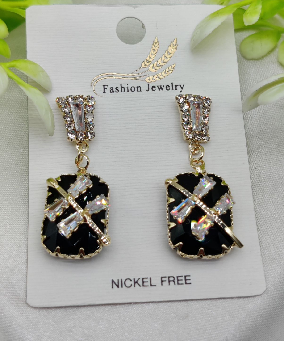Imported Elegant Black Crystal Earrings with Sparkling Rhinestone Accents – Nickel-Free| Girls Earrings | Women Earrings | Jewellery