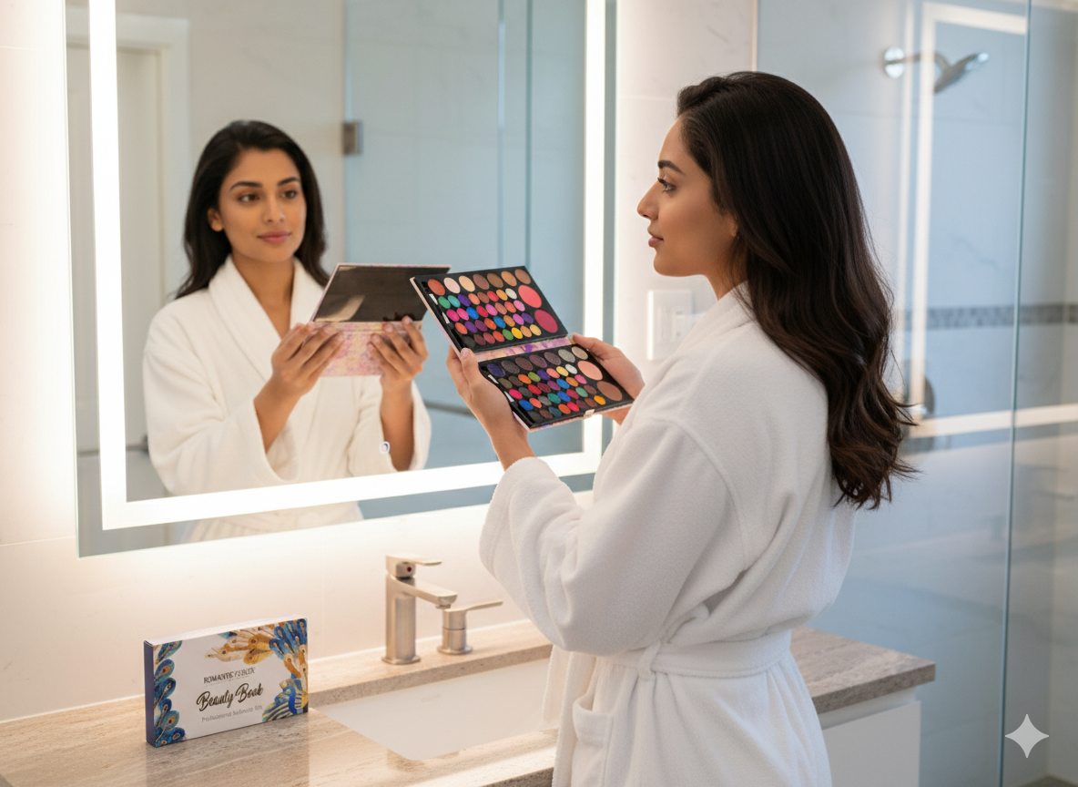 Discover the essence of romance with the Romantic Color Beauty Book Makeup Palette. This exquisite palette is a curated collection of captivating shades that ignite your creativity and enhance your natural beauty. From soft pastels to rich, deep hues, each shade is carefully selected to complement every skin tone and occasion. Indulge in velvety mattes that effortlessly blend and build, alongside shimmering metallics that add a touch of glamour. Whether you desire a subtle daytime glow or a sultry evening look, this palette offers endless possibilities. Encased in a sleek, portable design, the Romantic Color Beauty Book is your go-to companion for creating enchanting makeup looks wherever you go. Elevate your makeup routine and express your romantic side with this versatile and timeless palette.Features: